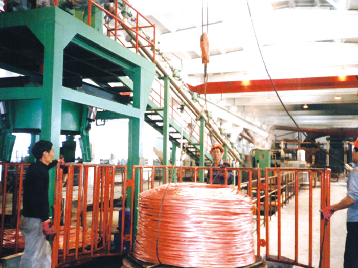 ◆以電解銅或一級廢紫銅進行熔煉,采用連鑄連軋生產方式生產光亮銅杆。